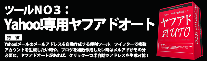 ヤフアドオートではほぼワンクリックでYahoo!アドレスを自動生成できます。
