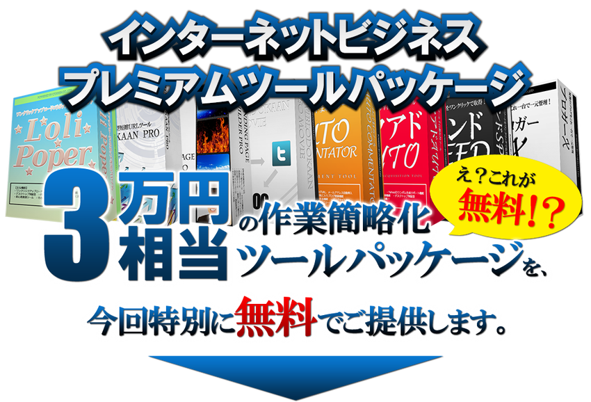 御覧頂いた通り、「インターネットビジネスプレミアムツールパッケージ」は、